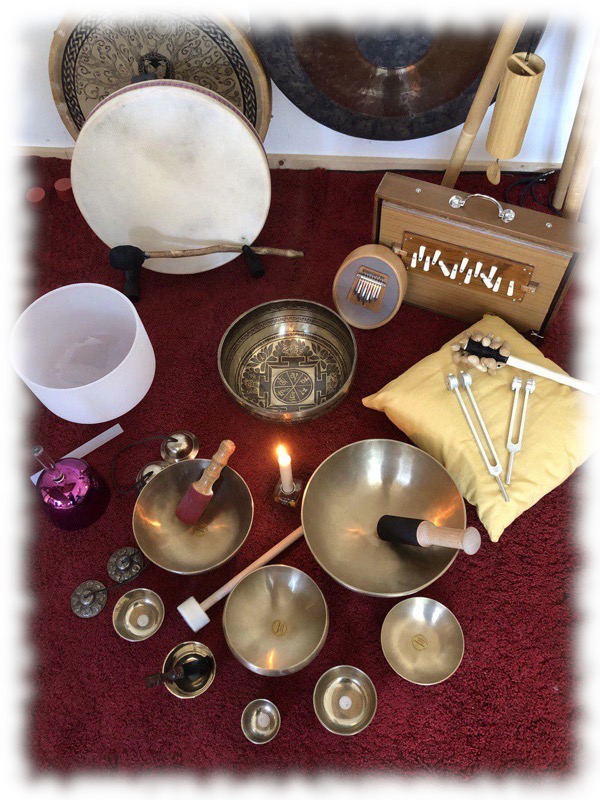 Tambour, gong, bols tibétains, bols de cristal, diapasons thérapeutiques, Sansula, voix, Koshis, Shruti box, silence…